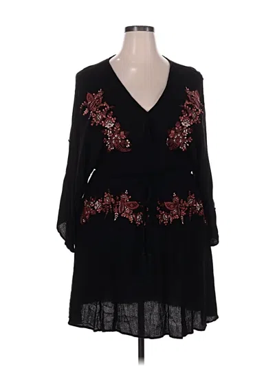 City Chic Cocktail Dress, Size: 18. Item Details: Black, Plunge Neckline, Short Length, Long Sleeve, Embroidered, Women's Dresses, 100% Viscose