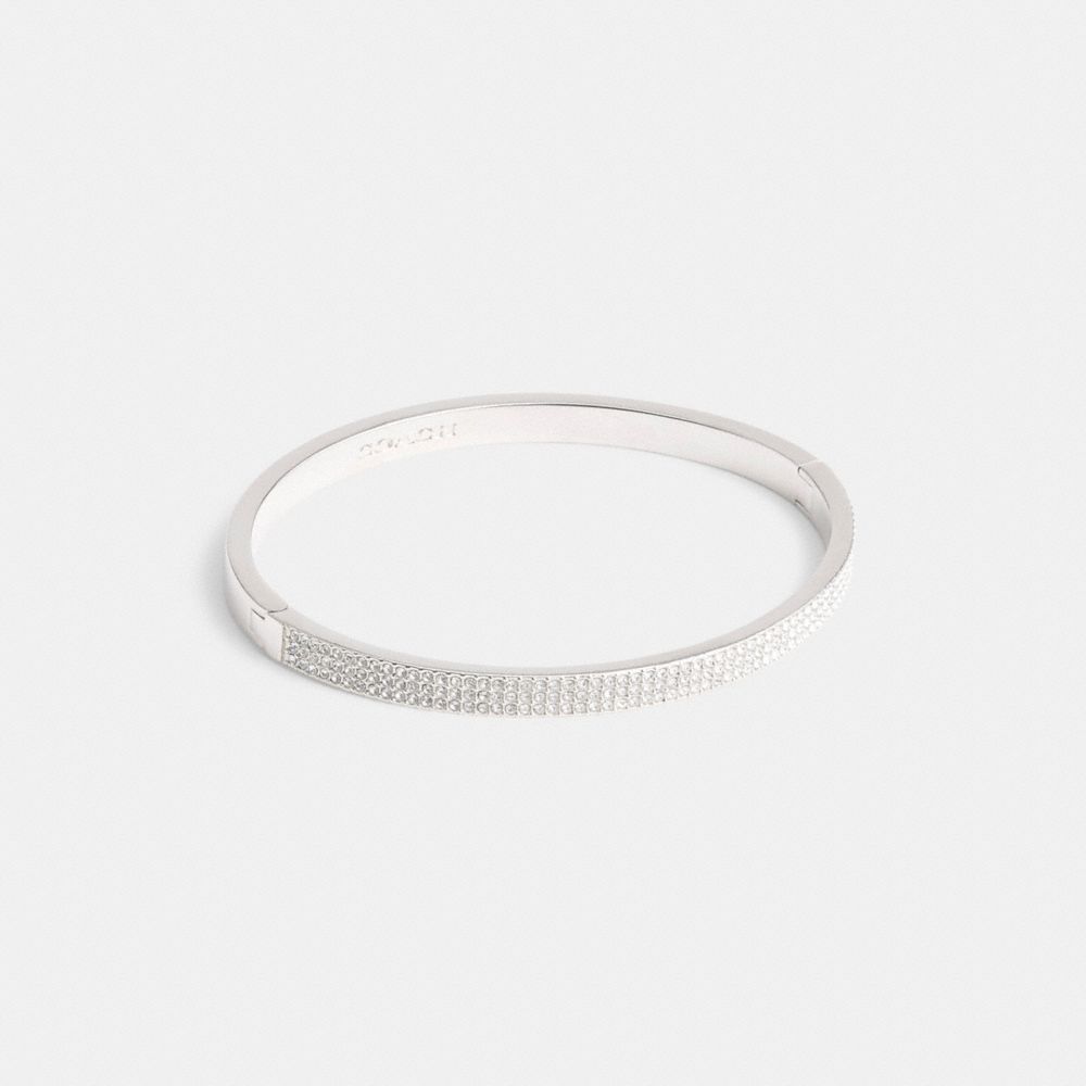 A dazzling pick for day or night this polished bangle sparkles with pavé crystals. It easily snaps open and shut with a hinged closure. Coach Pavé Hinged Bangle Bracelet - Women's - Silver