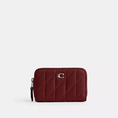 Crafted of quilted plush ultra-soft leather this case holds cards cash and other small essentials in a slim design that slips easily into pockets. Detailed with our Signature hardware the accordion gusseted design secures with a zip-around closure. Coach Small Zip Around Card Case With Pillow Quilting - Women's - Silver/dark Ruby