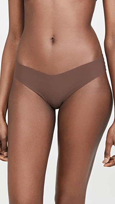 Commando's seamless thongs are perfect for underpinnning close-fitting dresses or pants - in fact, they're Rihanna's go-to when dressing for red carpet events. Made from soft stretch fabric, this chocolate pair has a flattering low-rise shape and that sits smoothly against the skin. Wear it with: Jennifer Meyer Necklace. - Chocolate stretch-nylon - Lined at base - 78% nylon, 22% spandex - Machine wash - Designer color: Mocha