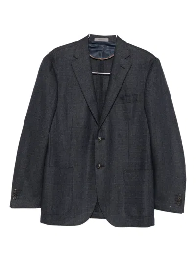 蓝色 正面双纽扣 贴袋 平驳领 平直下摆