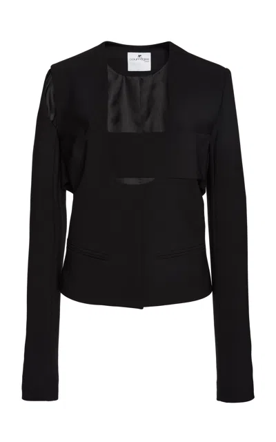 black concealed front fastening U-neck cut-out detailing long sleeves