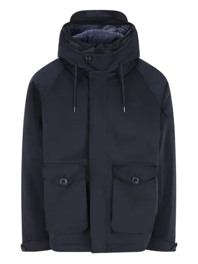 blue hooded button fastening front flap pockets zip detail long sleeves