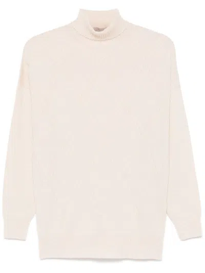 ecru knitted construction argyle check pattern roll neck drop shoulder long sleeves ribbed cuffs and hem
