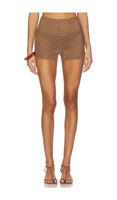 DEVON WINDSOR GEM 短裤 – 棕色. 尺码 S (also – L, M, XS). 13% 聚酯纤维, 87% 丝光棉. 只可干洗. 直套款. 服装是透明的,内衣会露出来。请注意不包括内衣. 轻盈紧身针织面料. 短裤长约 30 cm. DVWS-WF14. RE26598B.