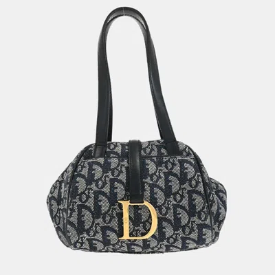This Christian Dior Trotter handbag features navy canvas with the iconic Dior logo pattern. The compact design is lightweight and easy to carry making it ideal for everyday use. Finished with leather trim it reflects Dior's classic logo style in a practical size.