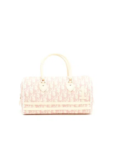 Christian Dior Trotter Boston Bag- Pink and cream Trotter canvas- Cream leather trim- Dual rolled handles- Silver-toned hardware- Pink lining with one internal pocket- Top zip closure- VintageOverall Preloved Condition: Good Condition.Exterior Condition: Good. The canvas and leather trim have some discolouration, with minor scuffing on the corners and handles.Interior Condition: Good. Light trace of use.Hardware: Shiny with light scratches.Delivered with authenticity card and bookletMade in ItalyDimensions:Width 31 cmDepth 18 cmHandle drop 14 cmPlease note that the majority of our items are vintage and therefore have tales to tell unless stated otherwise. Therefore, please look at pictures, descriptions and measurements provided as they give you the best idea of the story this item has to tell.