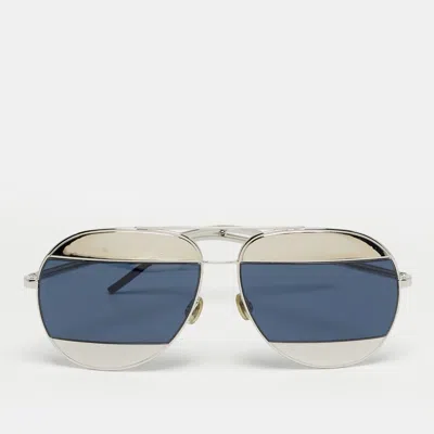 Dior's Dior Split1 aviator sunglasses feature mirrored blue lenses and a silver tone frame. The split bar detailing along the bridge adds architectural depth embodying the maison's signature innovation. A distinctive pair that brings modern precision to classic aviator design.