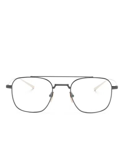 黑色、飞行员镜框、金属眉框、直镜腿、带弧度镜脚套。这款商品随附保护盒。FARFETCH 所有眼镜均不设验光镜片。