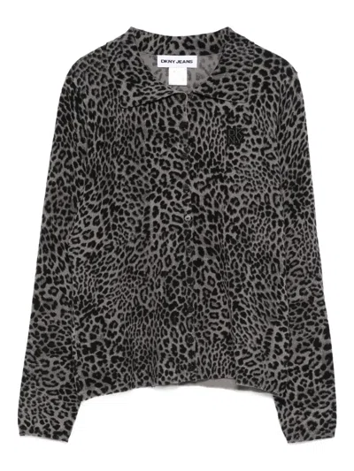 DKNY Logo-patch Leopard-pattern Cardigan In Multi