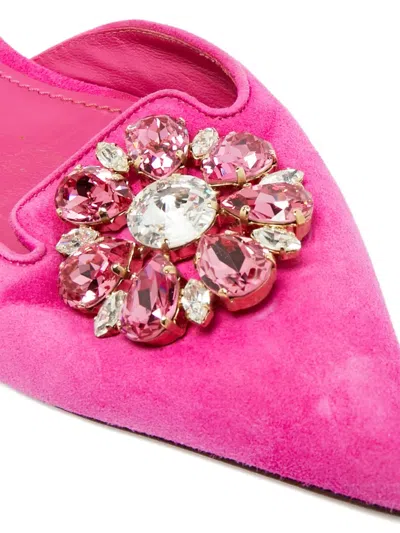 pink suede crystal embellishments pointed toe ankle strap buckle fastening This piece comes complete with a protective dust bag. Condition: GOOD. This previously owned and used item is in good condition with minimal signs of use. This may include fading of material or plating and scratches.