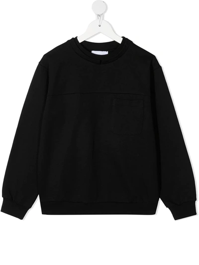 设计细节:黑色、罗纹细节、圆领、长袖、平直下摆。