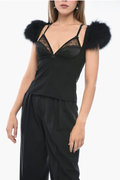DSQUARED2 Feathered Detail Goth Bra Crop Top In Black