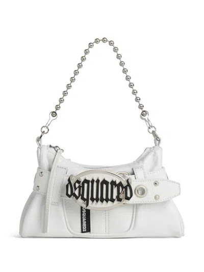 DSQUARED2 Gothic Logo Belted Leather Clutch In White
