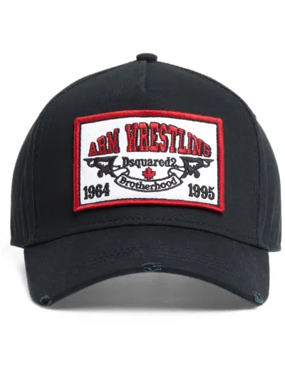 黑色 棉 正面饰有标贴 背面饰有标语刺绣 仿旧效果 环扣