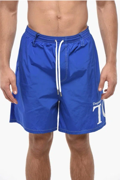 DSQUARED2 Solid Color Swim Shorts With Monogram In Blue