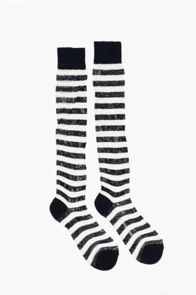 Striped Two-tone Long Socks In Black