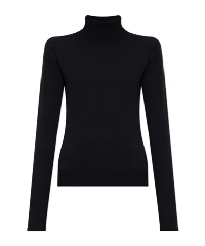 黑色 长袖 高领 正面饰有logo刺绣 罗纹袖口和下摆