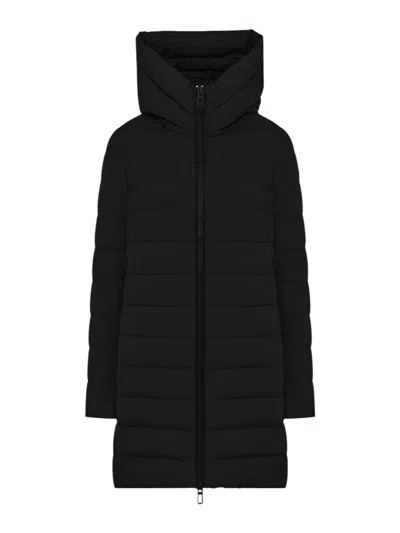 Duno licosa 2.0 women's jacket in stretch technical fabric, long jacket with a minimal and modern design, ideal for facing the cold season with style and elegance. the horizontal quilting enhances the silhouette, while the adjustable hood and high collar guarantee protection and comfort on the coldest days.