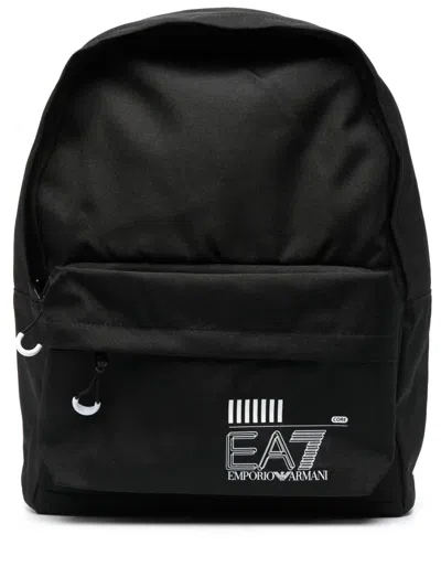Train Core backpack from EA7 EMPORIO ARMANI featuring black/white, logo print to the front, single flat top handle, front zip-fastening compartment, top zip fastening, adjustable shoulder straps, mesh panelling, main compartment, internal zip-fastening pocket and internal logo patch.