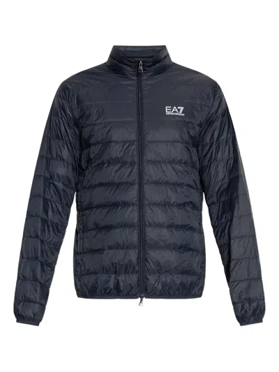 深蓝色 绗缝设计 拉链 圆领 logo印花 立领