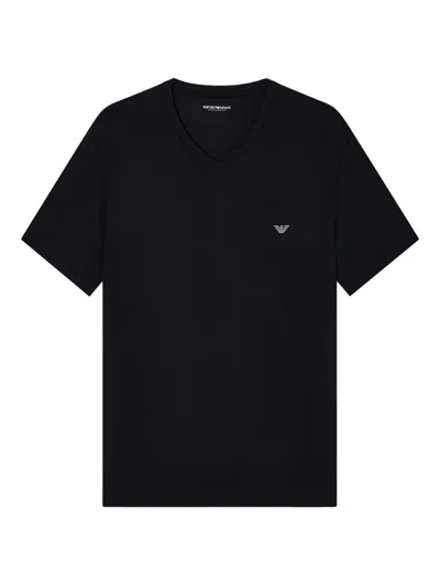 黑色 V领 logo细节 短袖