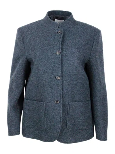 Jacket with mandarin collar and button closure made of fine and soft wool and with patch pockets on the front