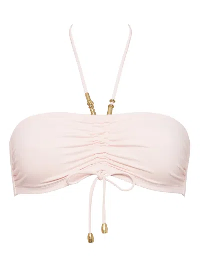粉色 正面饰有绑带 背面钩扣 珠饰镶嵌 请注意,试穿泳装类商品时,请穿着于自身衣物之外