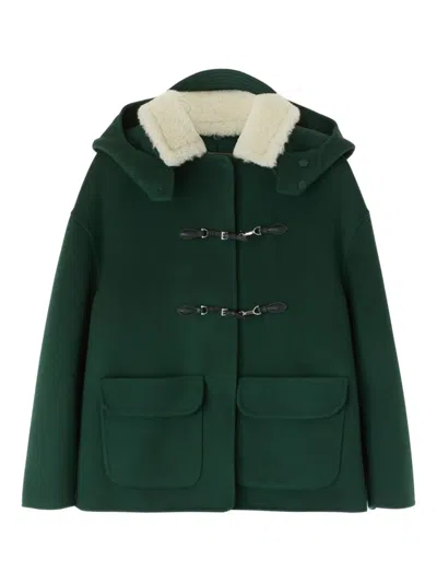 绿色 初剪羊毛 T字形开合 大号兜帽 皮毛一体领 平袋