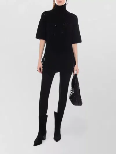 ERMANNO SCERVINO Short Sleeve Longline Knit Turtleneck In Black