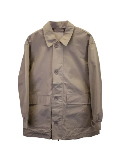 beige flap pockets button closure pointed collar long sleeves buttoned cuffs straight hem Condition: EXCELLENT. This previously owned item is in near-perfect condition with no signs of damage or use.