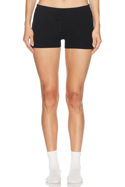 Eterne Drawstring Short in Black - Black. Size M (also in L, S, XL, XS). 48% cotton 48% modal 4% spandex. Made in USA. Machine wash. Pull-on styling with drawstring. Jersey fabric. ETEF-WF10. CB113-04. About the designer: