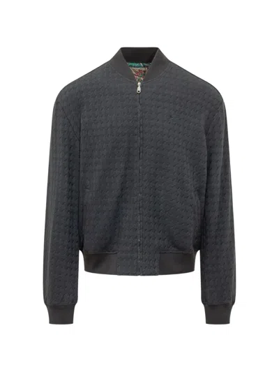 ETRO Textured Nylon Silk Bomber Jacket Ribbed Trims In Black