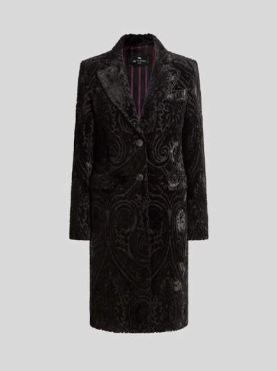 ETRO Velvet Jacquard Coat In Black