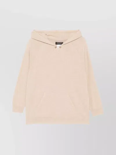 FABIANA FILIPPI Hooded Knitwear With Front Pocket And Ribbed Cuffs In Brown