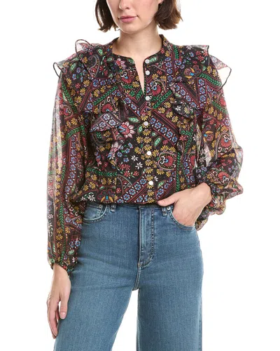 Color/Pattern: Black/Multicolor Approximately 25In From Shoulder To Hem Model Is 5'9 And Is Wearing A Size Small. Measurements May Vary Slightly By Size. Design Details: Ruffle Trim And Elastic Cuffs Button Front 75% Tencel, 25% Nylon Lining: 75% Cotton, 25% Polyester Hand Wash Imported