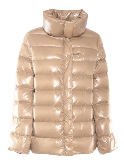 FAY High-neck Shiny Padded Jacket In Brown
