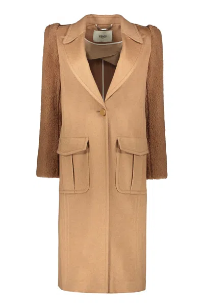 Karl Lagerfeld is an icon unto himself and has imparted his playful stylistic vision into the designs of the Roman maison of Fendi for over fifty years. Expertly crafted in Italy, this mid-length coat has been fashioned from camel hair and features peaked lapels, a front button fastening, long sleeves, front pockets and a rear central vent.