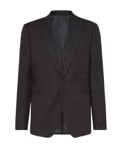 黑色 正面双纽扣 平驳领 正面平袋 长袖