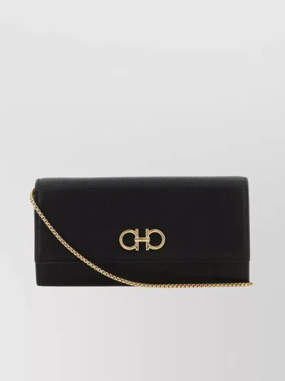 FERRAGAMO Leather Gancini Wallet Gold-tone Hardware In Black