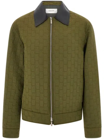 橄榄绿色 经典logo花纹 宽领 对比领 正面饰有拉链开合 两侧饰有挖袋 长袖 平直下摆