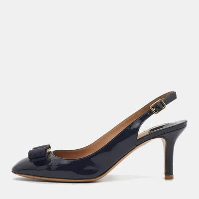 Look glamorous no matter what you wear with these beautiful pumps. These come with the finest quality patent leather slingback straps and 6cm heels. From Salvatore Ferragamo these are crafted in a stunning shade of navy blue and lend an edge to your entire ensemble.