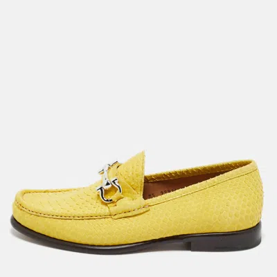 Salvatore Ferragamo brings an exotic twist to the classic loafer with yellow python leather. The bold texture and rich colour highlight the brand's craftsmanship while offering a fresh take on a timeless shoe. They're a conversation starting piece best shown off with cropped hems.