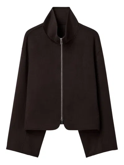 巧克力色 高领 拉链 长袖 短款 平直下摆