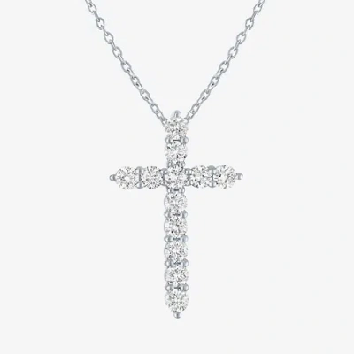 FINE JEWELRY Cross (g-h / Si2-i1) Womens 1 Ct. T.w. Lab Grown White Diamond Pure Silver Over Brass Cross 18 Inch