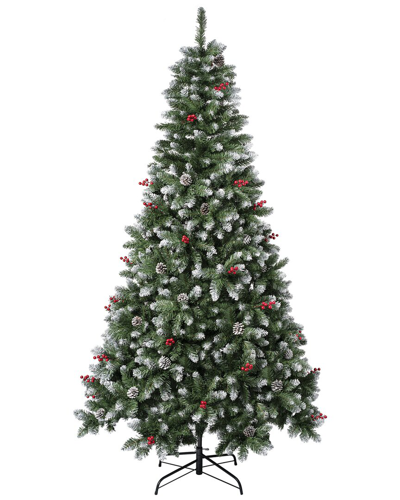 Color/Finish: Green The Cullen Pine Tree Offers A Slimmer Profile Than Trees Of Similar Height Making It A Great Choice For Display In Corners Or In Areas Where Floor Space Is Limited. Ted. This Tree Features Snow Dusted Branch Tips And Is Trimmed With Red Berries And Pinecones. Measures 7.5 Ft. Tall With 49In Diameter 1450 Branch Tips Trimmed With Berries And Pinecones All Metal Hinged Construction (Branches Are Attached To Center Pole Sections) Comes In Three Sections For Quick And Easy Set-Up Includes Sturdy Folding Metal Tree Stand Fire-Resistant And Non-Allergenic 5-Year Tree Manufacturer's Warranty Metal, Pvc Assembly Required Imported