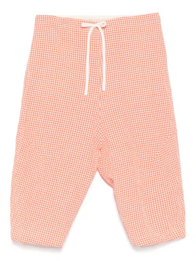 红色 抽绳腰身 两侧饰有挖袋 背面贴袋 平直下摆
