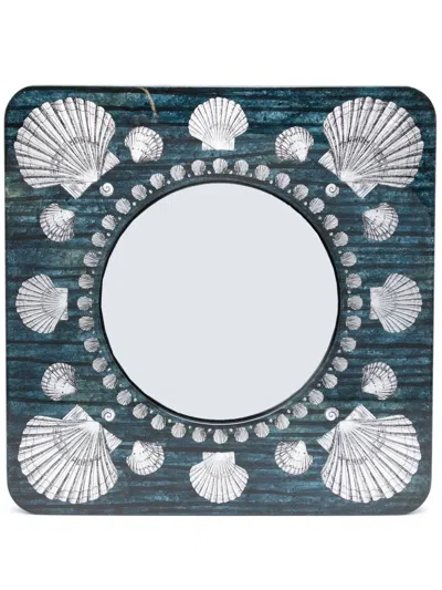 银色/水滴蓝色 手工镶嵌银箔 凸面 50厘米 x 50厘米 x 4厘米