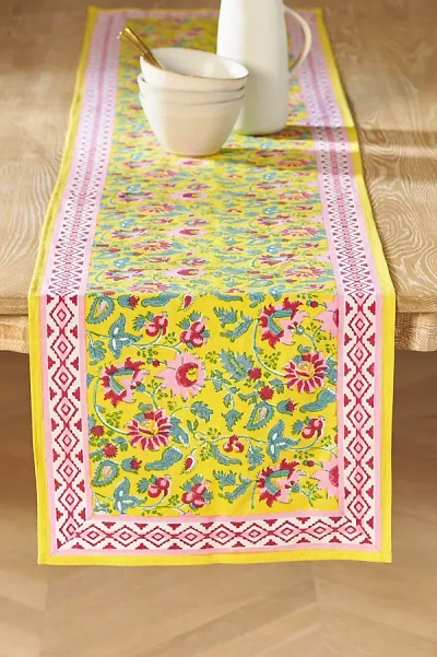 Chic and timeless, this lovely handmade blockprint table runner elevates the everyday and adds a colorful charm to your kitchen or dining room. Table Runner by Furbish Studio in Yellow, Cotton at Anthropologie