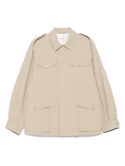 沙米色 正面饰有隐藏式开合 抽绳系带 四个正面盖袋 长袖